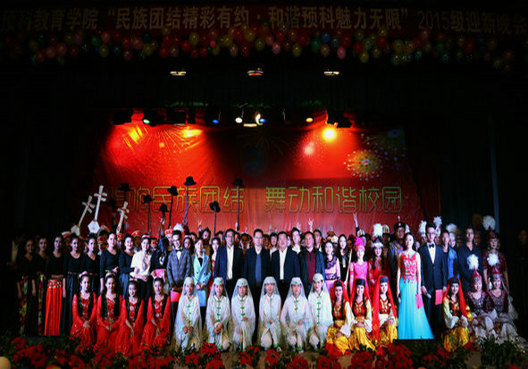 【宁夏大学新闻中心讯 民族预科教育学院 王兵 谢婧/文李雨涛 刘增毅/图】歌舞锦瑟绽放校园,民族融乐共度金秋。10月23日,为迎接2015级新生,民族预科教育学院在南校区大学生活动中心举行2015级迎新晚会。校党委副书记赵利宁、民族预科教育学院党政领导戴兴安、马玉龙、郑燕玲等与全院师生共同观看了演出。